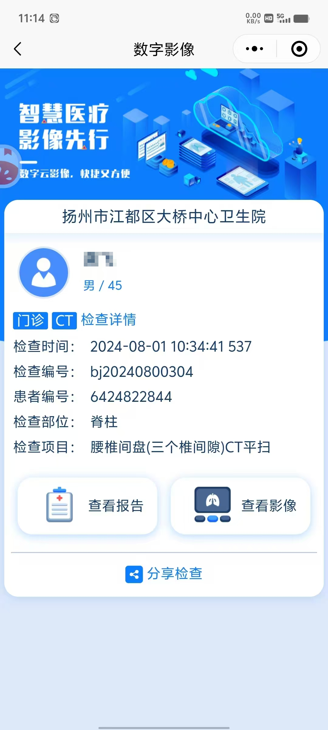 如需电子影像(免费获取“数字云影像”),可下载关注“江都智慧医疗”微信公众号,点击“数字影像”查询电子影像。